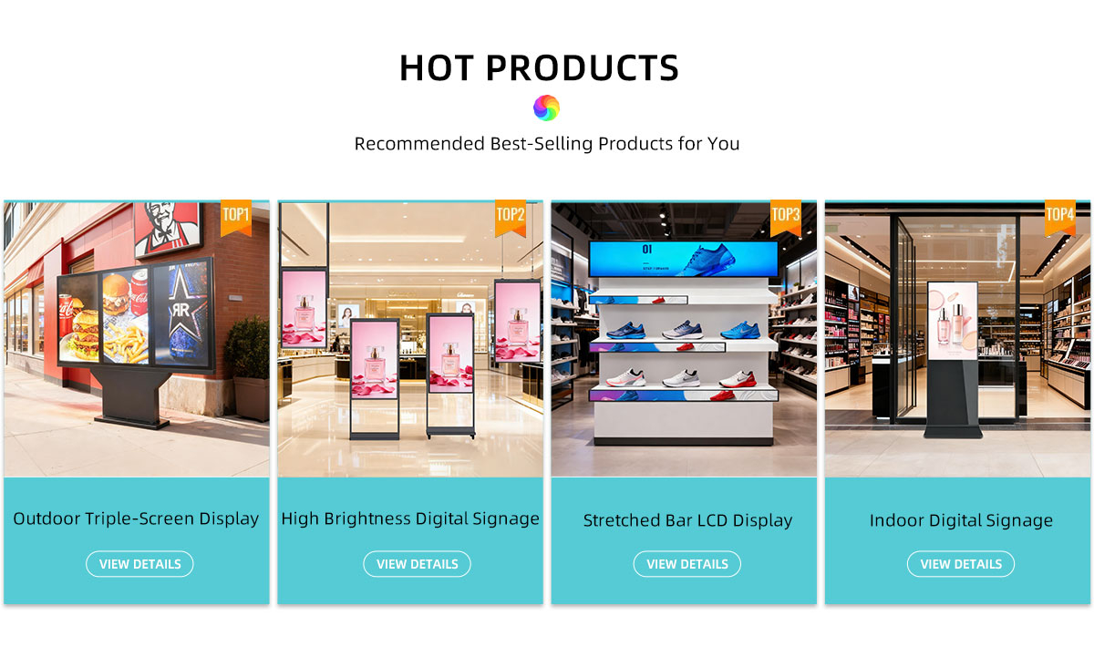 Prodotti principali: Segnaletica digitale da pavimento, segnaletica digitale a parete, chiosco di segnaletica digitale all'aperto, schermo pubblicitario, spinner per fotocamera di 360 gradi