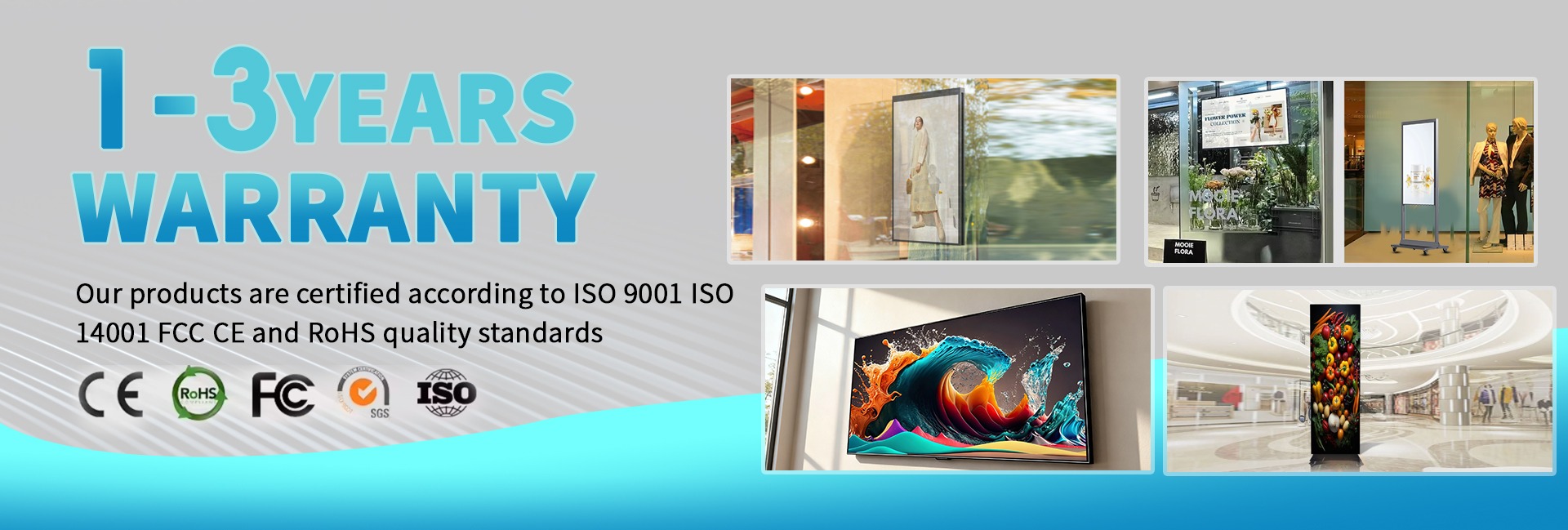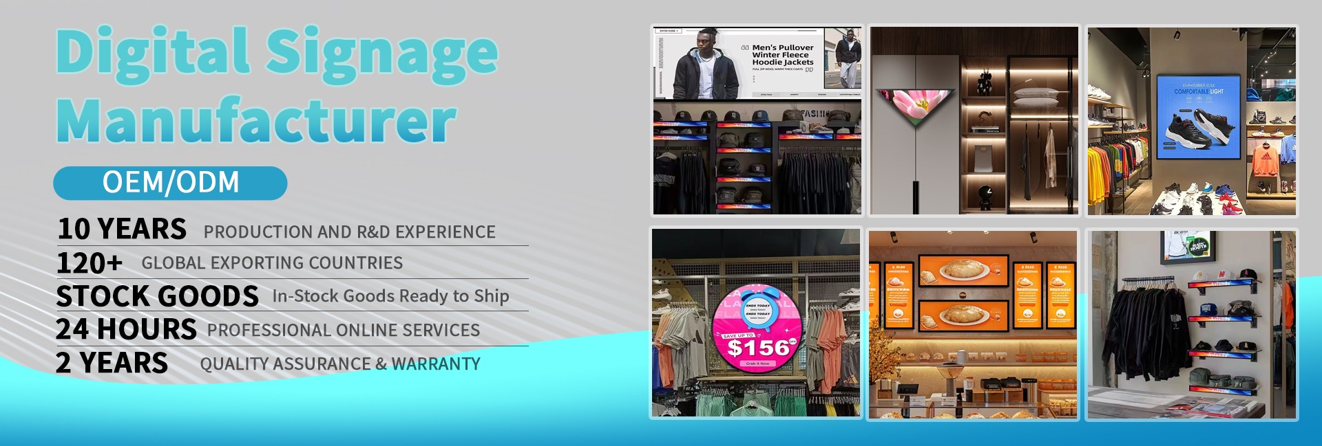 Principais produtos:Sinalização digital de suporte de chão, sinalização digital de parede, display LCD de barra esticada, tela de exibição de publicidade, máquina de publicidade de três telas